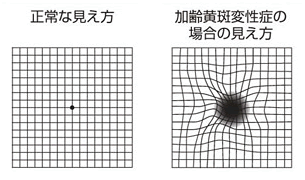 尚、眼科ではアムスラーチャートと呼ばれる格子状の表を用いて、見え方の異常を確認します。